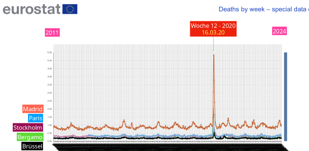 Neue Daten-Analysen zeigen, dass die Pandemie anders verlaufen ist, als bisher gedacht. Dies gilt vor allem für die Sterblichkeit. Die bedrohlichen Bilder aus Bergamo und die Berichte über sehr viele Todesfälle in kurzer Zeit schienen bisher einmalig. Ab der 12. Kalenderwoche 2020 verzehnfachte sich dort die Sterblichkeit für wenige Wochen im Vergleich zum langjährigen Mittel. In anderen Regionen wie der Lombardei, der Emilia Romagna, in Madrid, Stockholm, Paris und im Elsass kam es zu einem ähnlichen Phänomen mit hohen Sterbezahlen in kurzen Zeiträumen, sogenannten Letalitäts-Peaks.